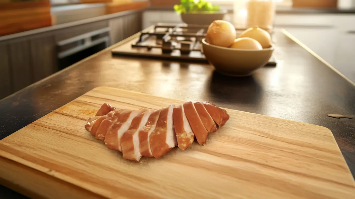 De kipfilet is zorgvuldig bereid om een sappige en zachte textuur te garanderen, perfect voor sandwiches of salades.