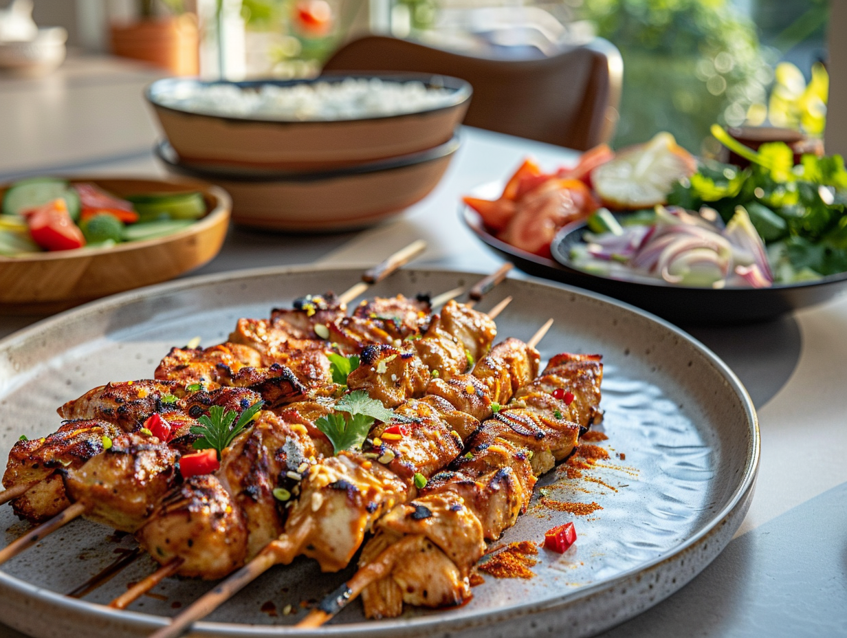 Perfect voor barbecueën of als onderdeel van een gezellige maaltijd met vrienden en familie, biedt deze kipsaté een authentieke en rijke smaakbeleving.